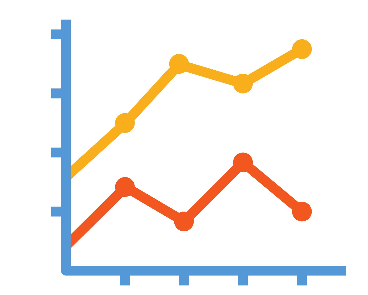 Line charts represent data by a line which joins up points on a labelled grid