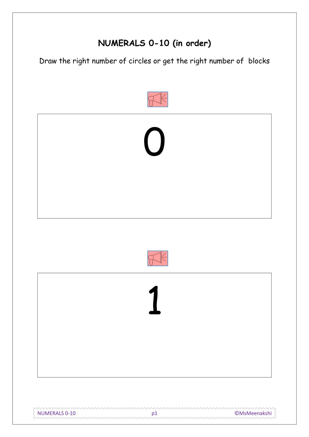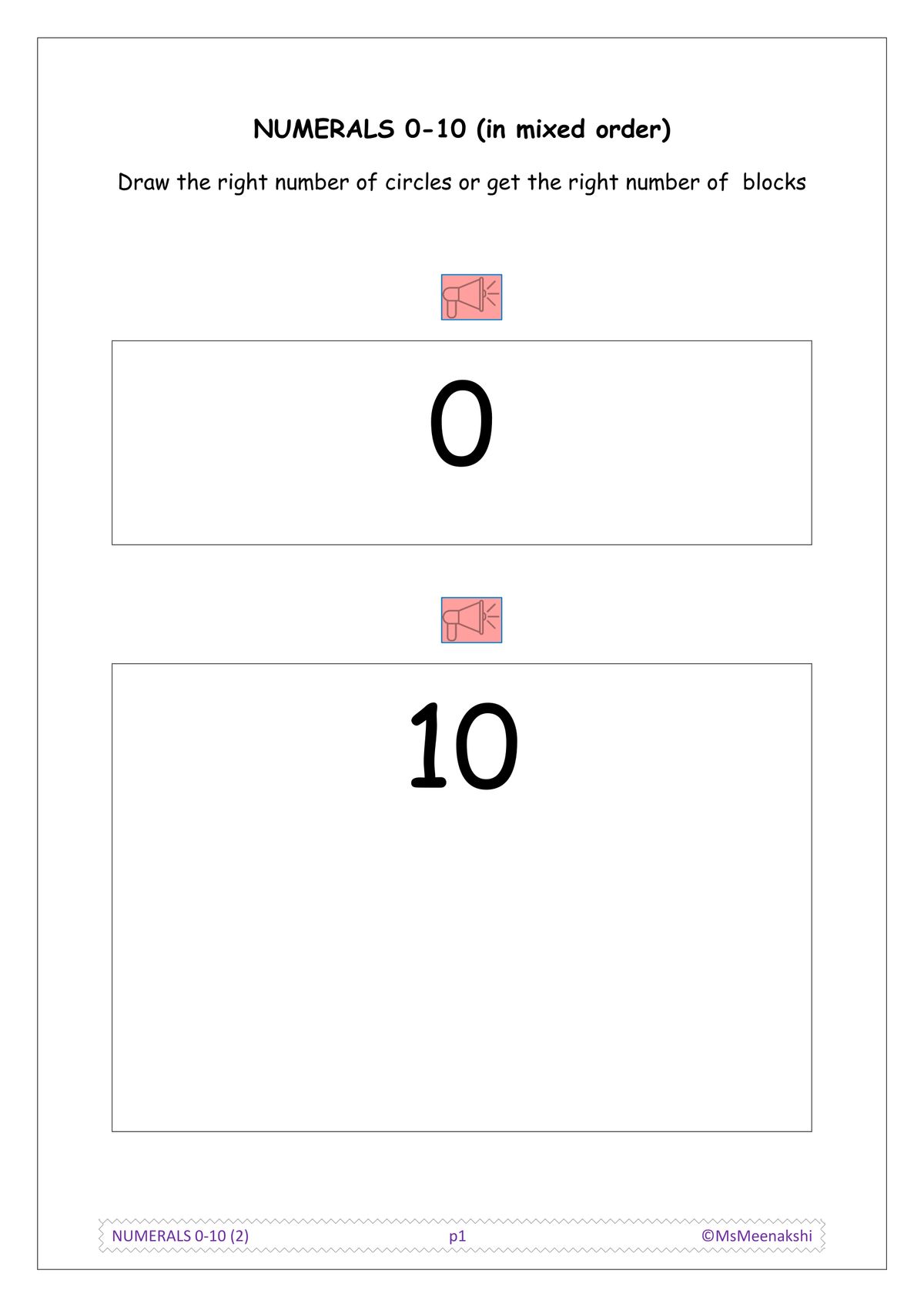 Recognize numerals 0-10 in order