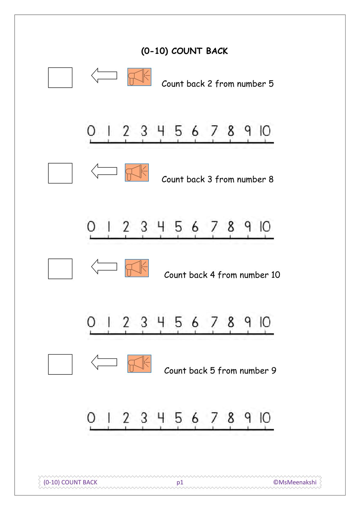 • This resource pack of 4 pages covers counting back from numbers up to 10