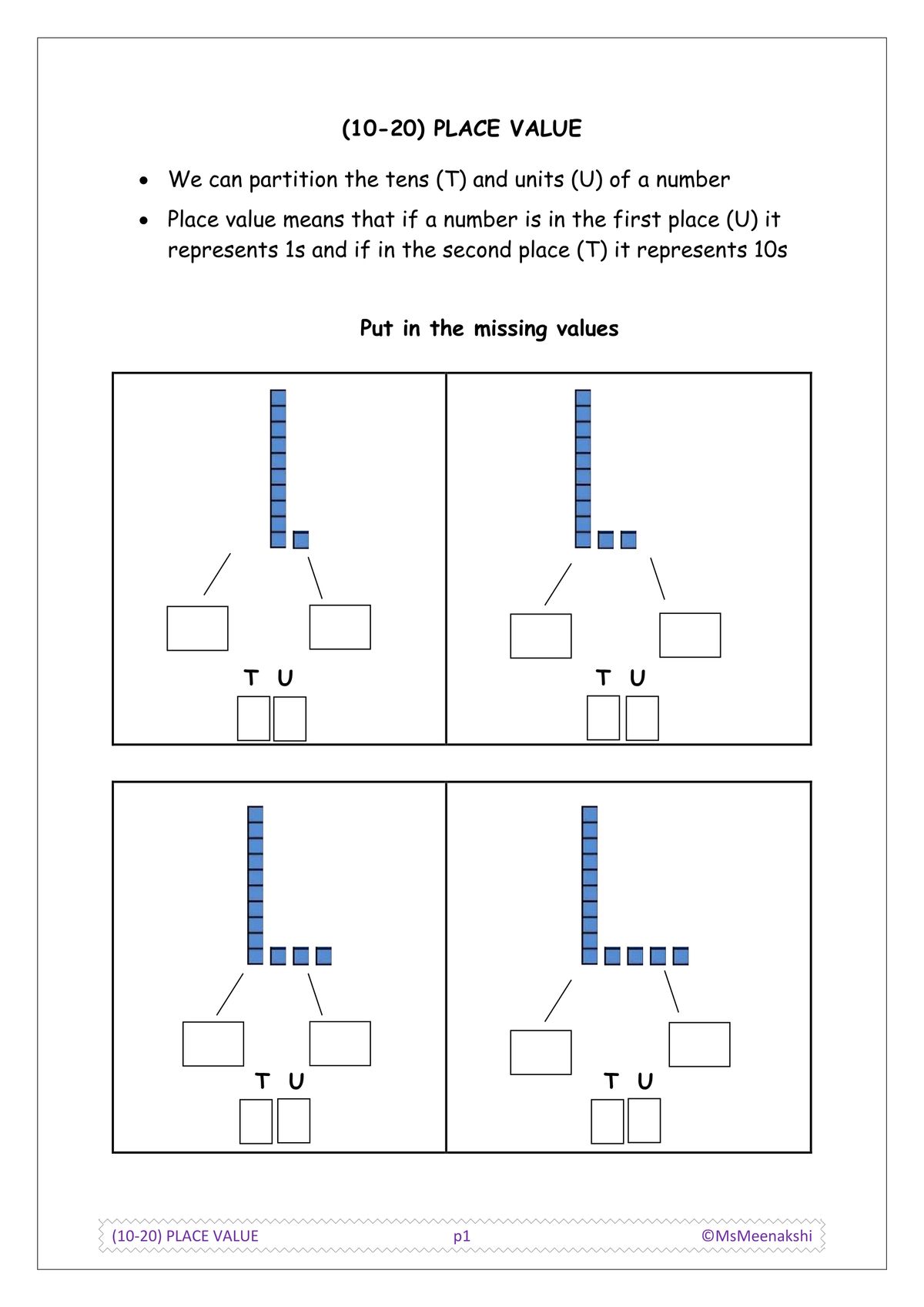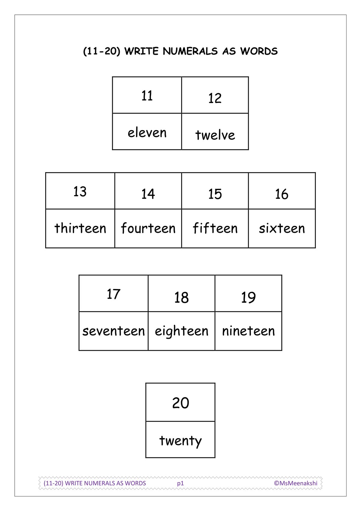 NUMBER – (11-20) write numerals as words