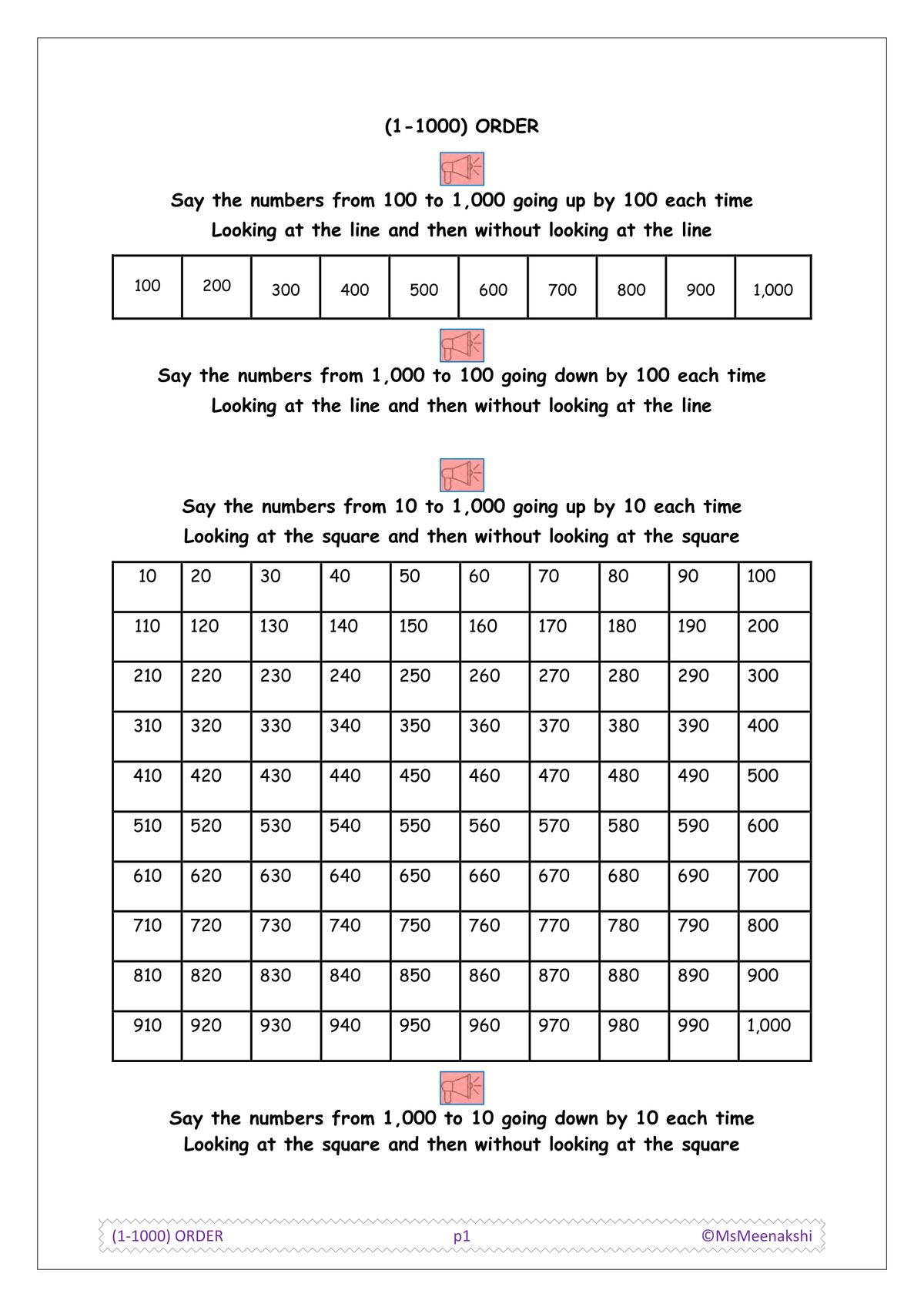 This resource pack of 13 pages covers ordering numbers from 1 to 1,000