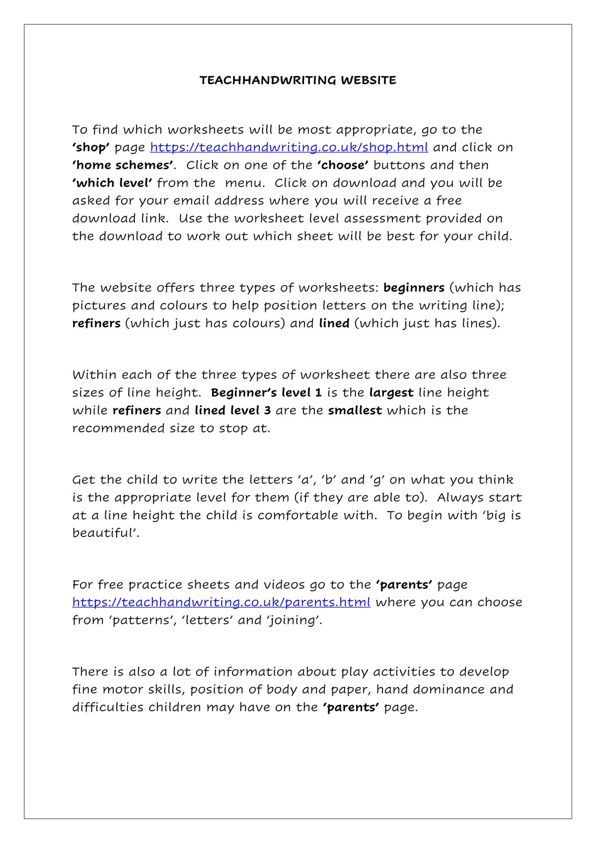 This resource of 1 page gives links to the ‘teachhandwriting’ website which is the best one I have found