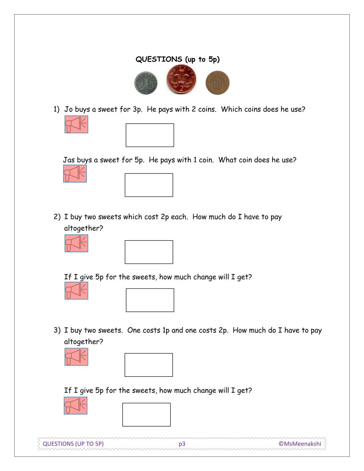 This resource pack of 5 pages introduces the 1p coin and uses it to count up to 10p