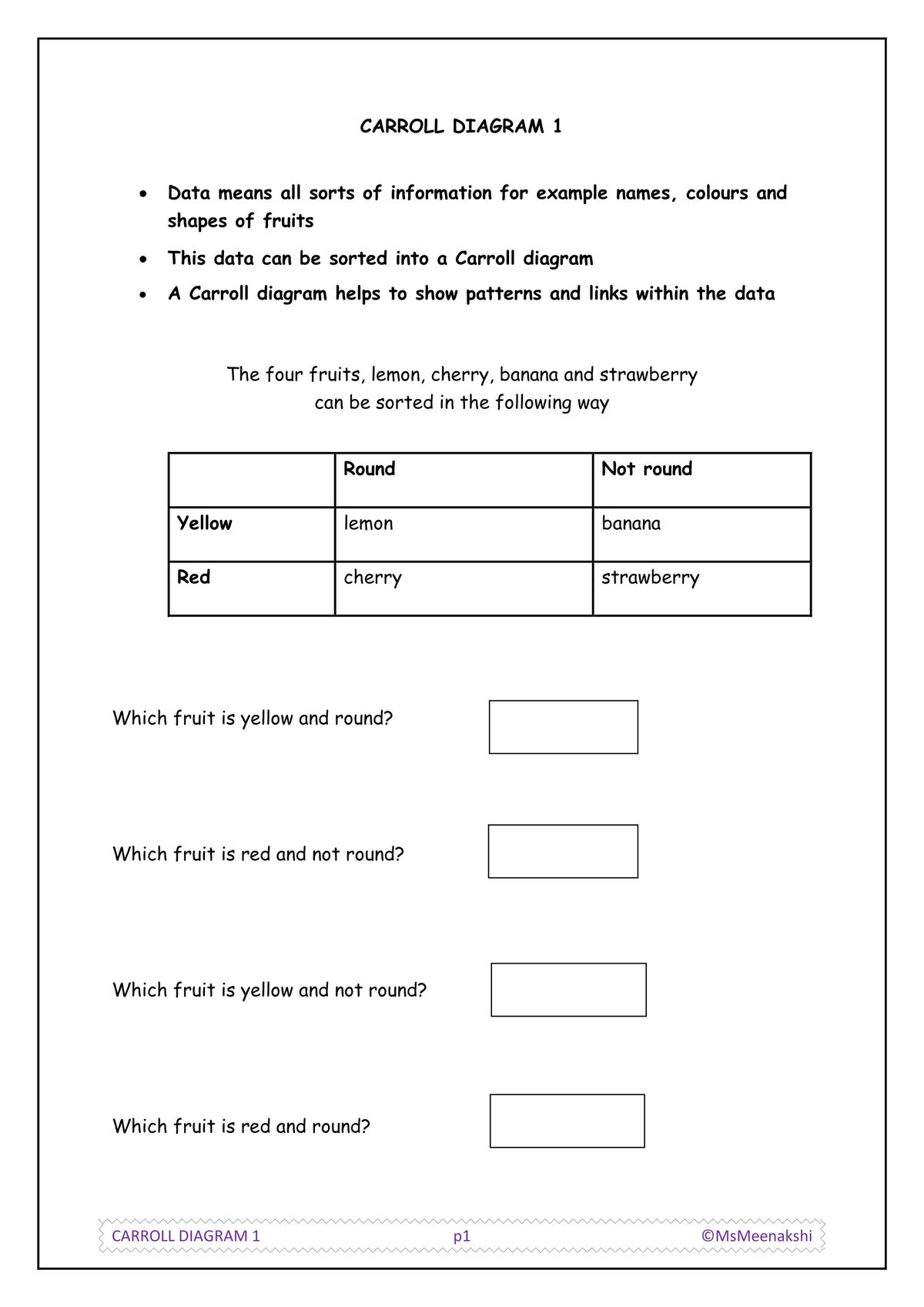 Interpret and make a Carroll diagram