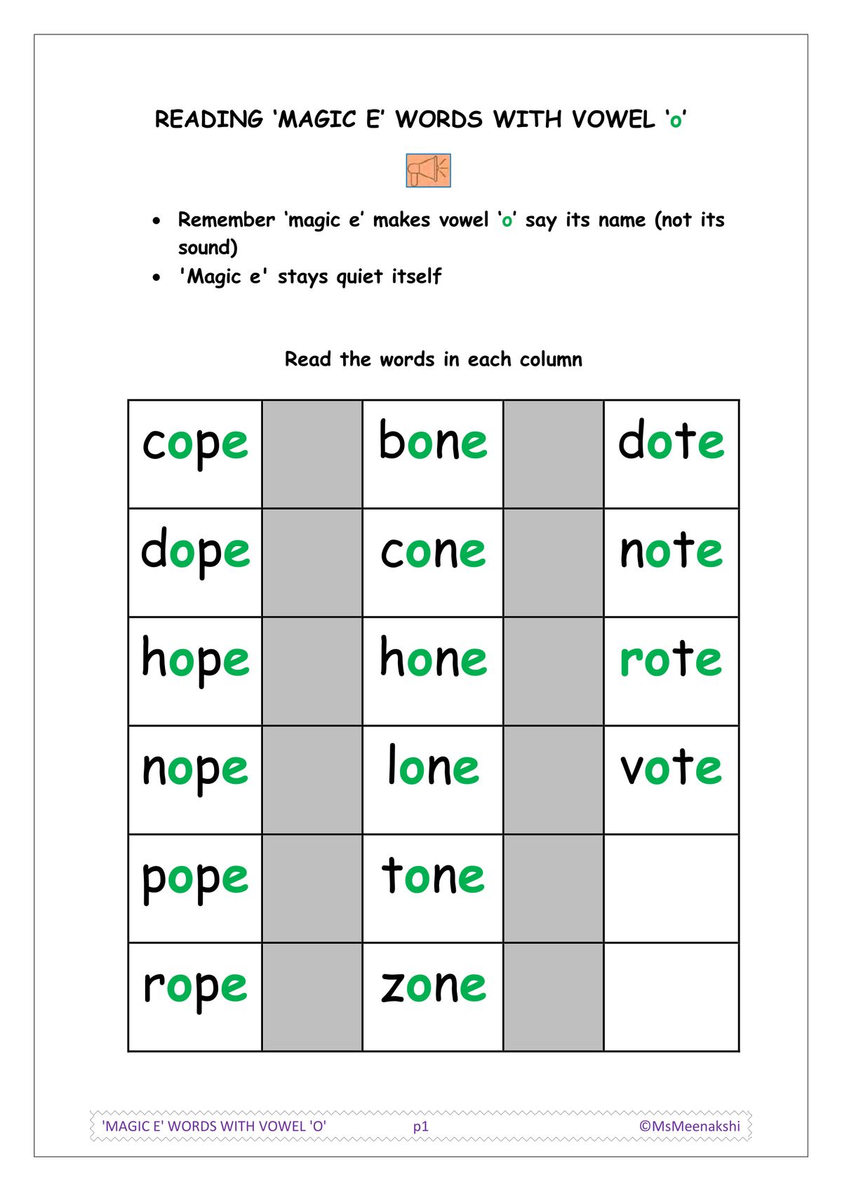 Hear, read, spell and use words containing 'magic e' with ‘o’ (hope)