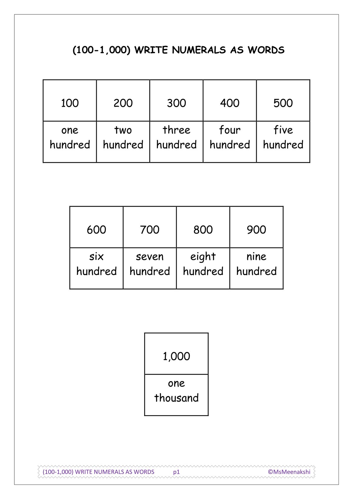 NUMBER – (20-100) write numerals as words